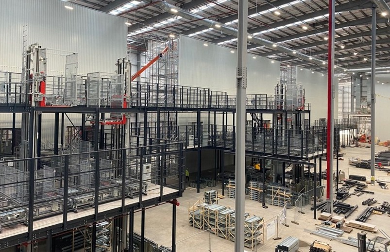 Darüber hinaus installierten wir 32.000 m² Zwischengeschoss auf mehreren Ebenen – von der Kleidungsautomation bis zu zweistufigen Förderlösungen. Früh zeigte sich ein Problem: der Betonboden entsprach nicht den Toleranzen. Doch unser Team reagierte schnell, passte die Logistik an und hielt den Zeitplan. Nächster Schritt: ein fast identisches Projekt in Polen.